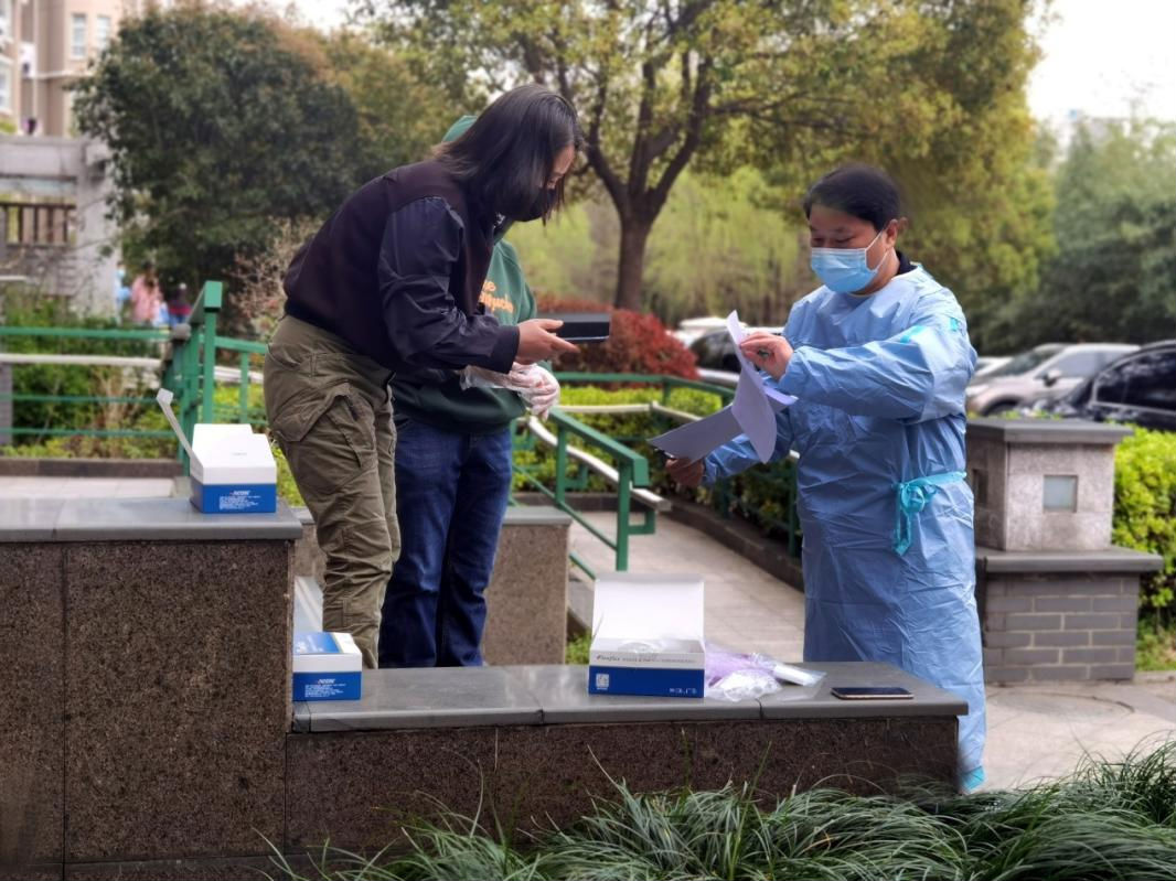 自3月26日開(kāi)始,吳昊就奔波在社區(qū)疫情防控工作的第一線,他的主要工作是協(xié)助指導(dǎo)社區(qū)居民開(kāi)展新冠病毒自檢工作?!澳?,這里有幾位住戶?請(qǐng)拿好抗原檢測(cè)試劑盒?!薄皺z測(cè)前,記得洗凈雙手。檢測(cè)時(shí),棉簽伸入1.5到2厘米……”小區(qū)的樓道里,同樣的叮囑吳昊重復(fù)了無(wú)數(shù)遍。他和樓組長(zhǎng)逐門逐戶發(fā)放試劑盒,確?!皯?yīng)檢盡檢、不落一戶、不漏一人”。針對(duì)不會(huì)自測(cè)的高齡人群,吳昊則堅(jiān)持入戶助檢,貼心幫助老人們完成操作流程。