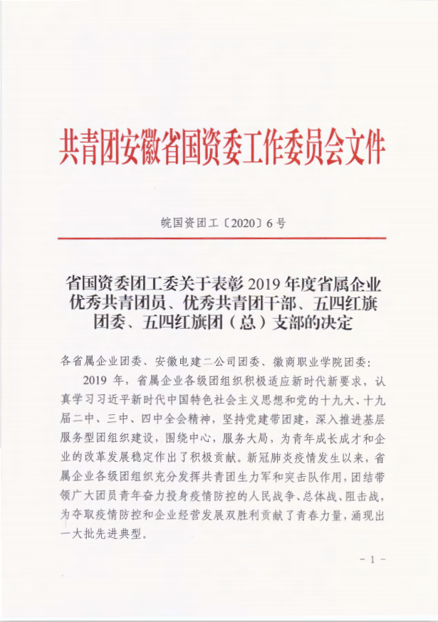 近日,省國資委團(tuán)工委開展了2019年度省屬企業(yè)“兩紅兩優(yōu)”先進(jìn)表彰活動(dòng),國貿(mào)集團(tuán)多個(gè)基層團(tuán)組織、團(tuán)干部及團(tuán)員青年載譽(yù)歸來。