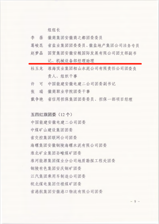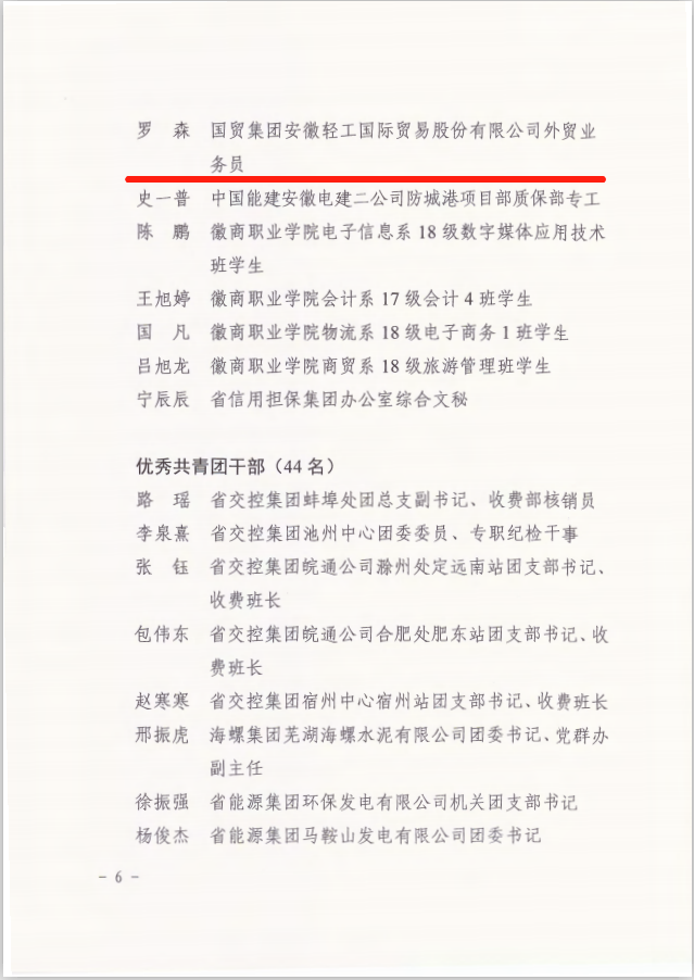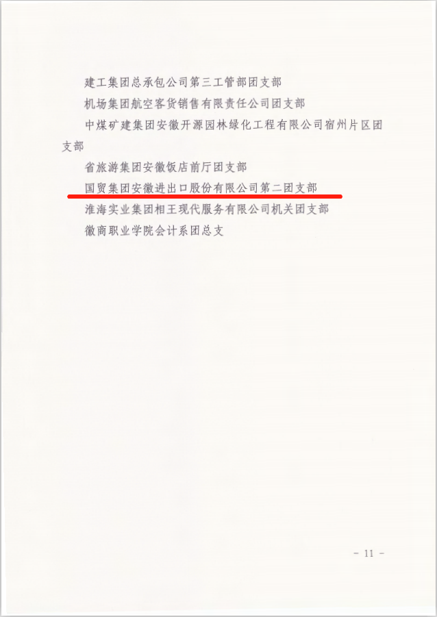 在此次表彰中,省進(jìn)出口公司第二團(tuán)支部榮獲“五四紅旗團(tuán)支部”榮譽(yù)稱號,安糧集團(tuán)趙夢晶同志榮獲“優(yōu)秀共青團(tuán)干部”榮譽(yù)稱號,輕工國際羅森同志榮獲“優(yōu)秀共青團(tuán)員”榮譽(yù)稱號。