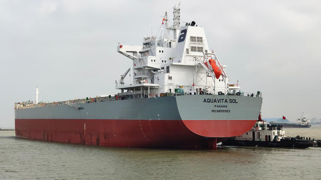3月16日清晨,8.2萬載重噸“AQUAVITA SEA號”散貨船發(fā)出一聲長鳴,緩緩駛離岸邊,正式宣告該船交付工作的順利完成。