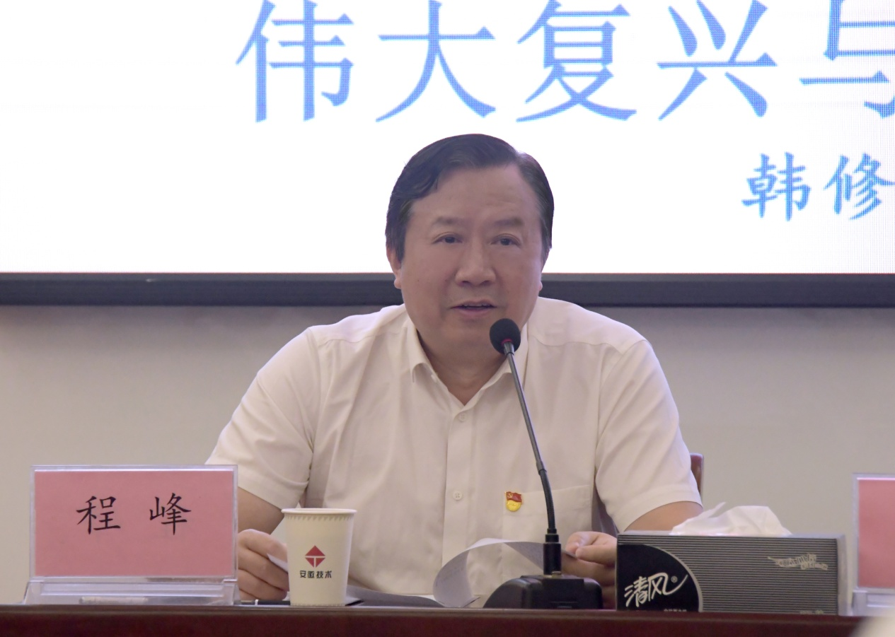 報告會上,韓修良以“偉大復(fù)興與安徽力量”為主題,結(jié)合安徽發(fā)展實際,從“走好偉大復(fù)興趕考之路”“偉大復(fù)興巨輪領(lǐng)航中國行穩(wěn)致遠”“書寫偉大復(fù)興的安徽篇章”等三個方面,對習(xí)近平總書記“七一”重要講話精神作了深入淺出的系統(tǒng)解讀。